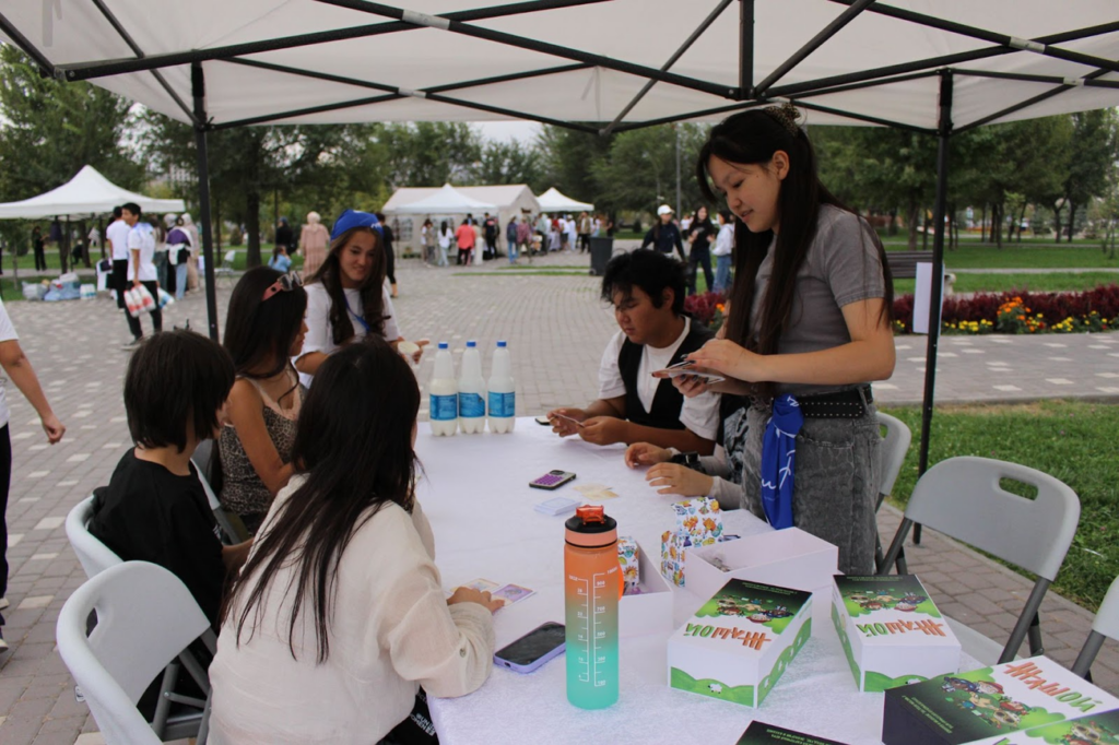 Art Space (“Önör”) engaged emotions and creativity. At the “Color Lab” station, participants painted old clothes, giving them a second life. The board game “Jashoy: Save the Planet,” developed by MoveGreen, taught eco-thinking through play. At the “Eco Workshop,” guests crafted boxes from recycled materials.